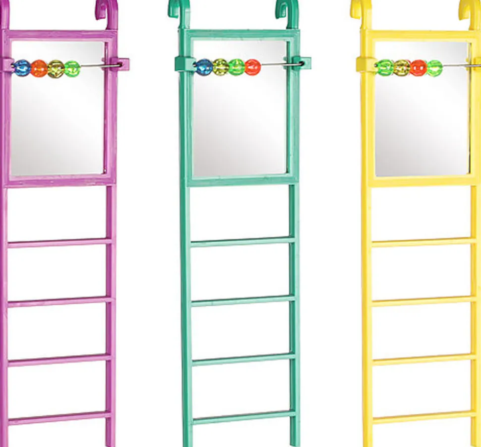 Cette échelle en plastique est dotée de quatre barreaux qui permettront à votre oiseau de se voir dans le miroir situé au dessus et de jouer avec les quatre perles multicolores situées sur une tige en métal.
