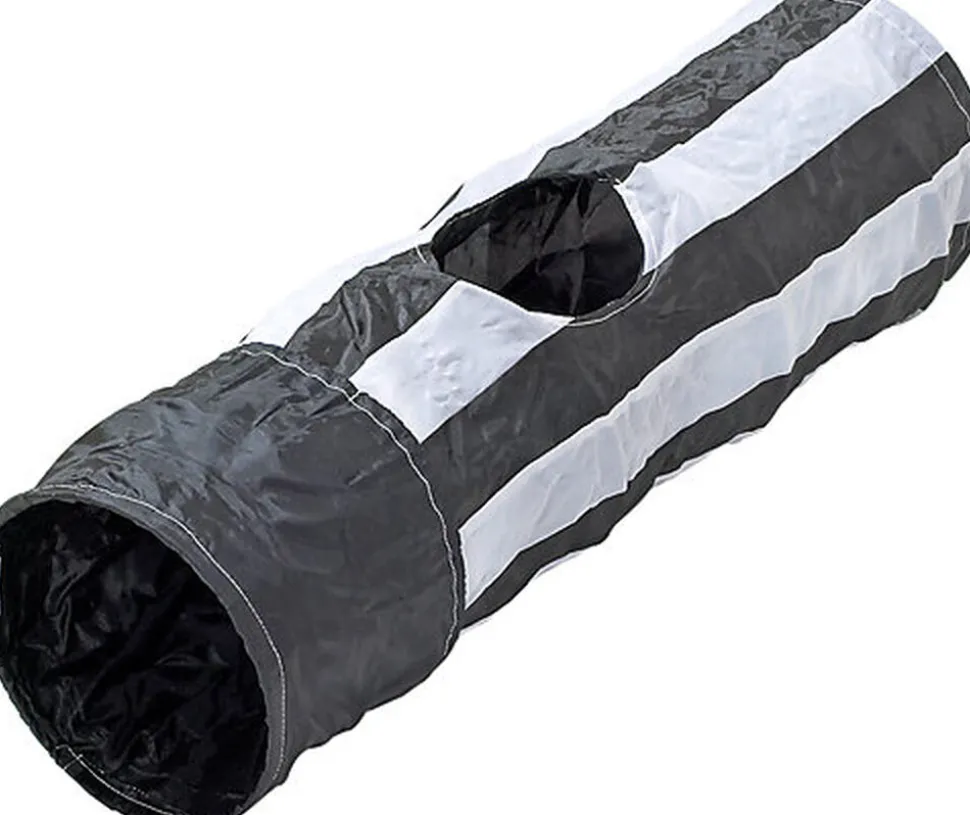 Ce tunnel pour chat dispose d’anneaux qui permettent de le plier facilement en un cercle compact.