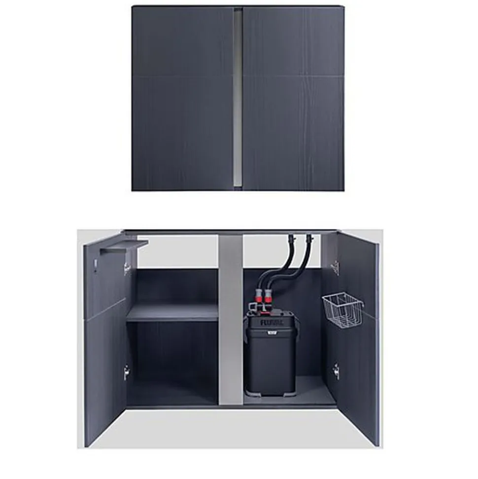 | Plus produit | Pieds réglablesCharnières softclose à fermeture douceEtagère sur la porte intérieure : possibilité de rangement des aliments lorsque la porte est ouverte Panier en fil d’acier sur la face intérieure de la porte droite Même les bords non visibles sont recouverts d’un revêtement Le bandeau en acier inoxydable de l’aquarium se retrouve sur le meuble entre les portes Base supérieure du meuble sur laquelle repose l’aquarium est décalée vers l’arrière, lui donnant un effet de flottementÉquipé d’un bloc de prises électriques |