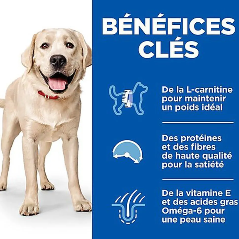 Ce n’est pas parce que votre chien adulte de grande race a un gros appétit que sa nourriture doit être très calorique. HILL’S SCIENCE PLAN Aliment pour chien adulte de grande race Light au poulet constitue une nutrition précise pour les chiens adultes moins actifs, nécessitant un aliment hypocalorique afin de maintenir un poids et un style de vie sains.