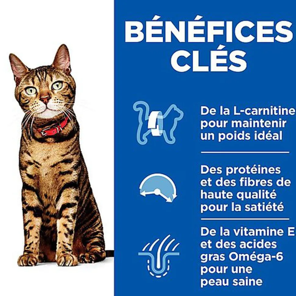 | Plus produit | Haute teneur en L-carnitine pour aider à contrôler la prise de poids. 44% de matières grasses et 15% de calories en moins pour aider au maintien d’un poids idéal (comparé au Multipack Science Plan Feline Adult). Des teneurs contrôlées en minéraux et un pH urinaire fiable et contrôlé pour contribuer à la bonne santé de l’appareil urinairei. Formule supérieure enrichie en antioxydants avec une haute teneur en Vitamine E pour soutenir la bonne efficacité du système immunitaire. |