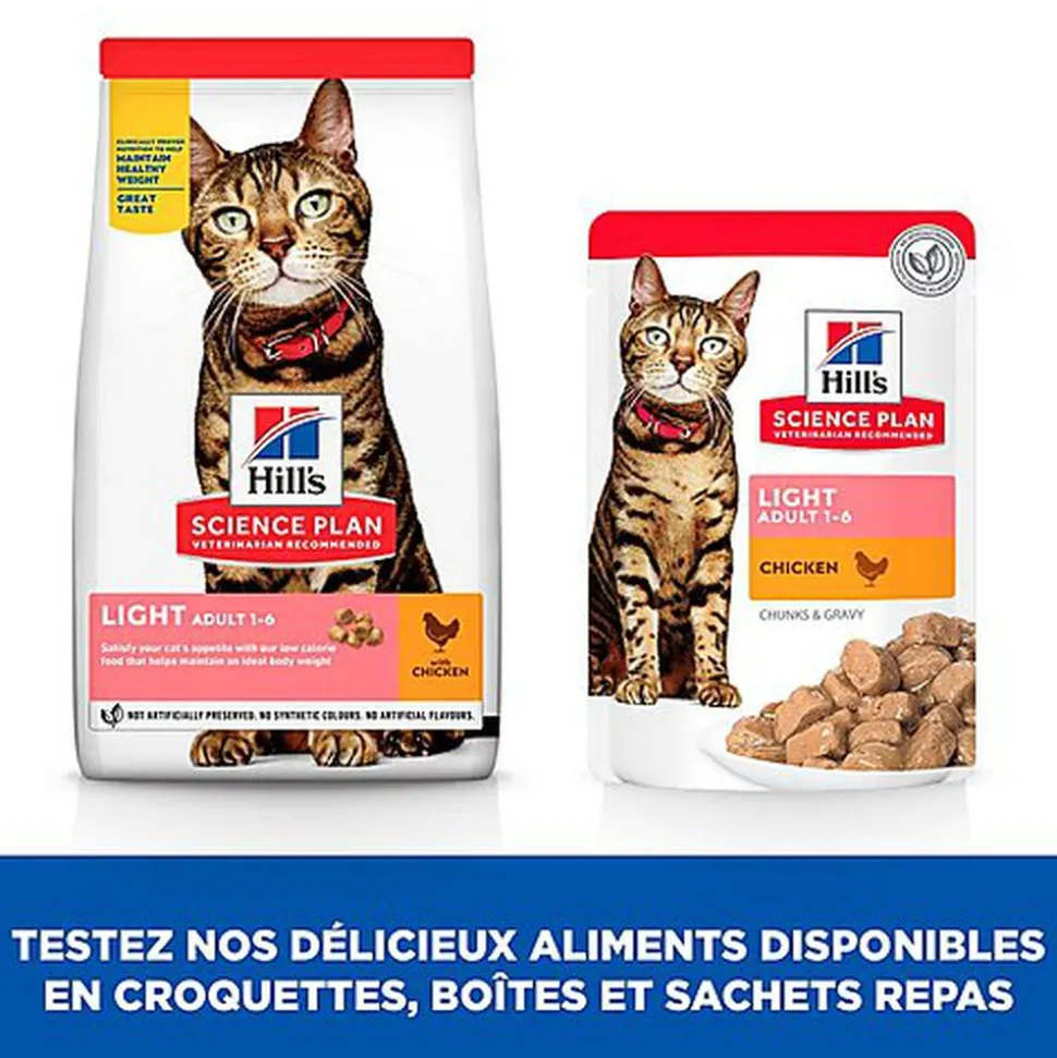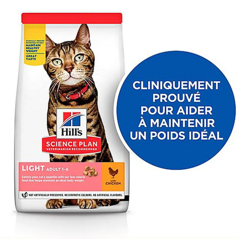 Hill’s(TM) Science Plan(TM) Feline Adult Light aide à maintenir un poids idéal. Contient des antioxydants à l’efficacité cliniquement prouvée et une forte teneur en L-carnitine pour favoriser la conversion de graisses en énergie.
