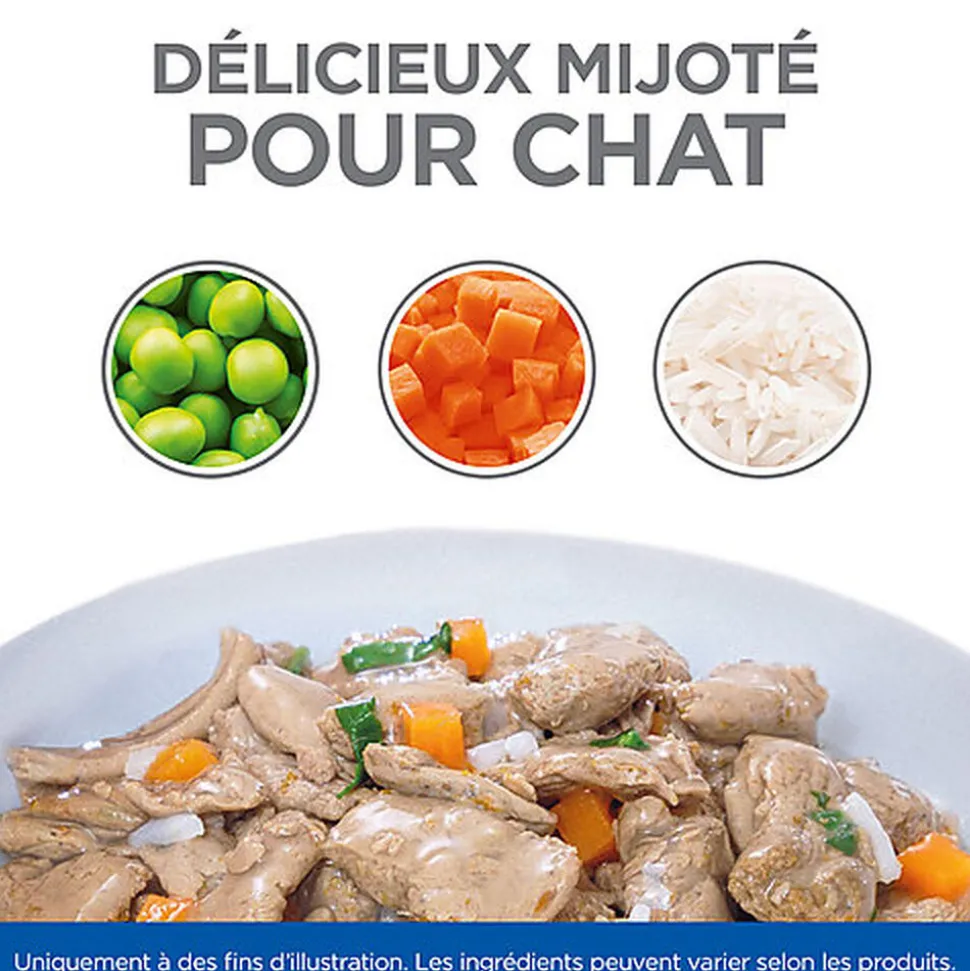 Faites de l’heure du repas une aventure avec les Mijotés HILL’S SCIENCE PLAN, l’alimentation adaptée aux jeunes chats stérilisés avec 2 saveurs Poulet et Saumon. Ces succulents Mijotés dans leur nouveau sachet repas sont formulés pour les chats stérilisés afin de les aider à maintenir un poids idéal.