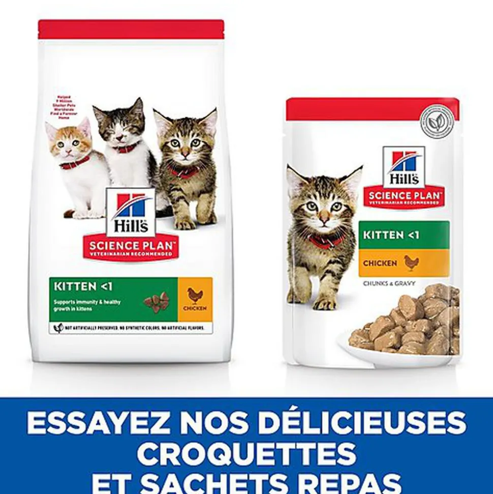 Les sachets fraicheur Hill’s Science Plan Kitten sont spécialement formulés pour aider les chatons à bien grandir et à s’épanouir pleinement. Leur teneur en DHA issu d’huile de poisson favorise le bon développement des yeux et du cerveau.