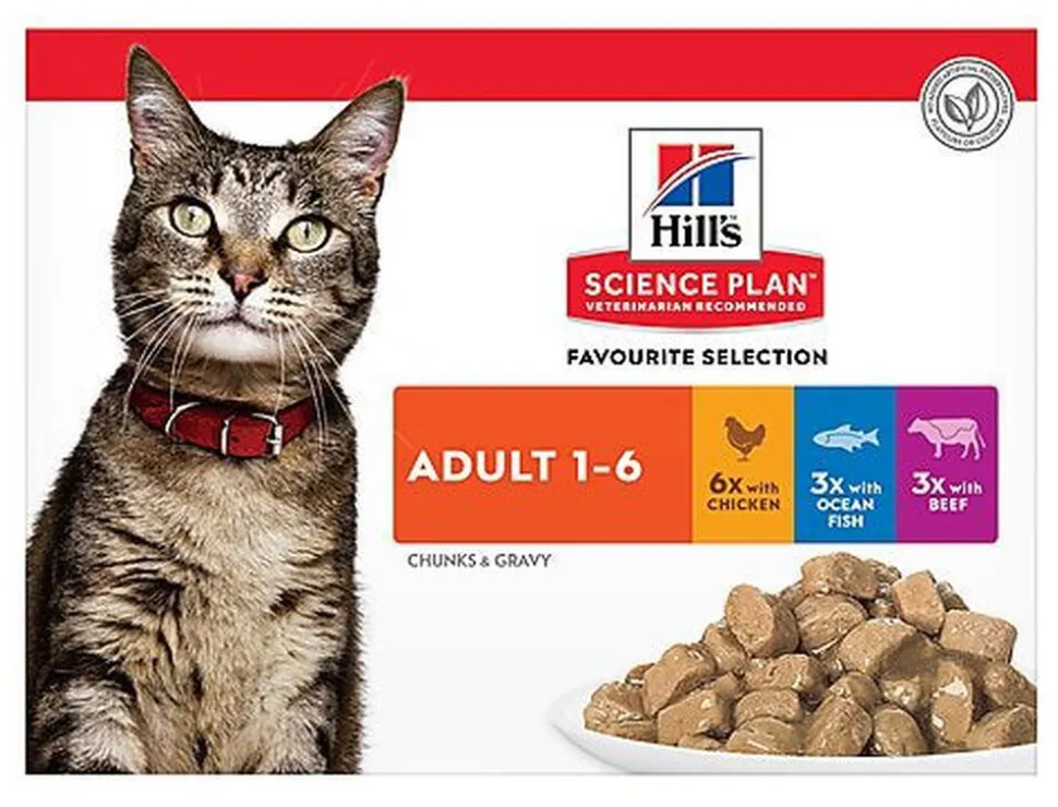 Faites plaisir à votre Chats avec les Bouchées en Sauce Hill’s(TM) Science Plan(TM). Cette sélection comprend des sachets repas au Poulet, au Poisson et au Boeuf. Chaque sachet repas est un aliment complet contenant le juste équilibre en vitamines et en minéraux pour aider votre Chats à rester en pleine santé.