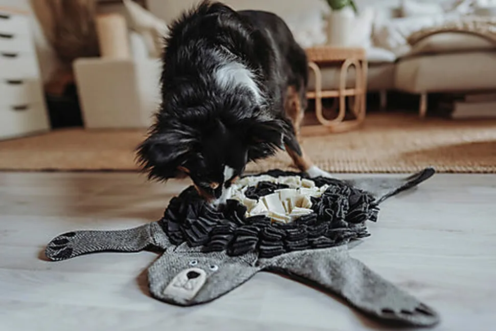 En renonçant délibérément aux squeakers, les jouets à l’aspect animalier attrayant sont idéaux pour un jeu silencieux et une activité d’intérieur à la fois calme et adaptée à l’espèce. Le grand tapis à renifler offre aux quadrupèdes intelligents une occupation de longue durée. Les différents »compartiments« peuvent toujours être remplis de petits snacks à trouver.