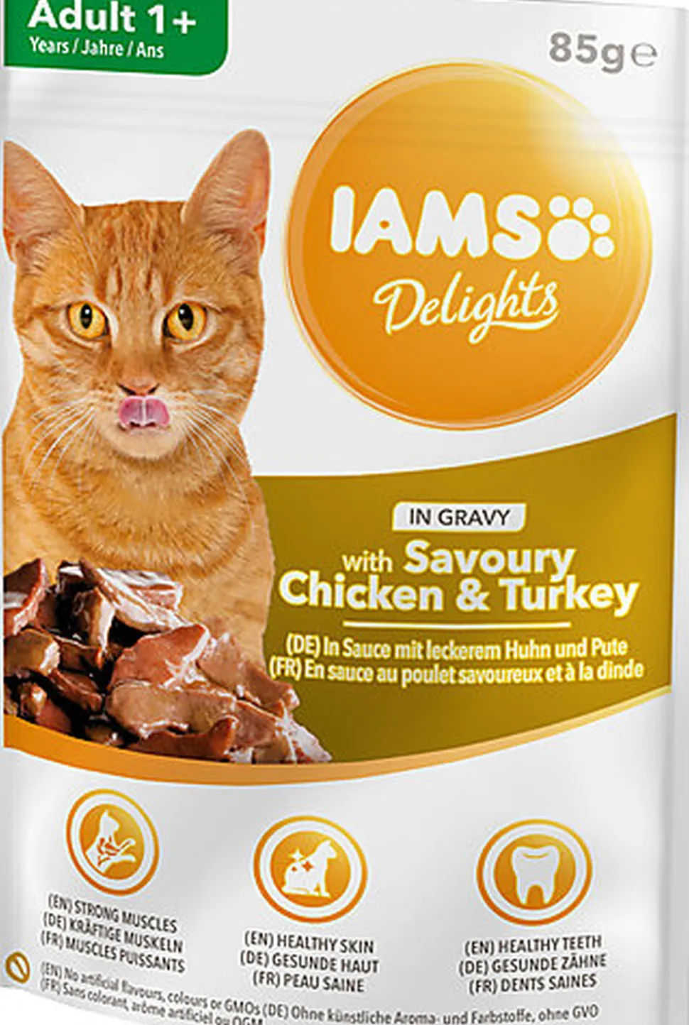 IAMS Delights au poulet et à la dinde en sauce est un aliment humide complet et équilibré de haute qualité pour chats adultes. Chaque recette est soigneusement préparée avec des ingrédients de premier choix et offre un goût irrésistible qui ravira les papilles de votre chat. Avec une bonne assimilation des nutriments contenus dans leur nourriture, les chats restent en bonne santé, et cela se voit. IAMS Delights fournit tous les nutriments dont votre animal a besoin à chaque étape de sa vie. Nos aliments pour chats adultes contiennent des protéines animales de haute qualité pour contribuer au développement de la musculature, tandis que la biotine, les minéraux et les vitamines favorisent une peau saine et un pelage brillant. En outre, ces recettes fournissent à votre chat les minéraux dont il a besoin pour maintenir des os solides et des dents fortes. IAMS Delights fournit aux chats la nutrition experte dont ils ont besoin, sans aucun compromis et avec un goût qu’ils adorent.