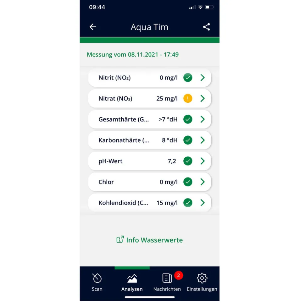 Test d’eau avec analyse sur smartphone pour aquariums d’eau douce, bassins et eau de robinet ou de puits