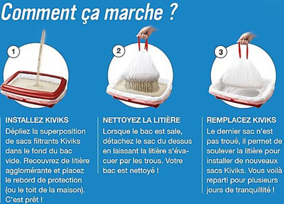 <p Economique : réduit jusqu’à 30% la consommation de litière, Ecologique : sacs recyclables et biodégradables, Diminue le risque de transmission de maladies, Compatible avec tous les bacs à litière.