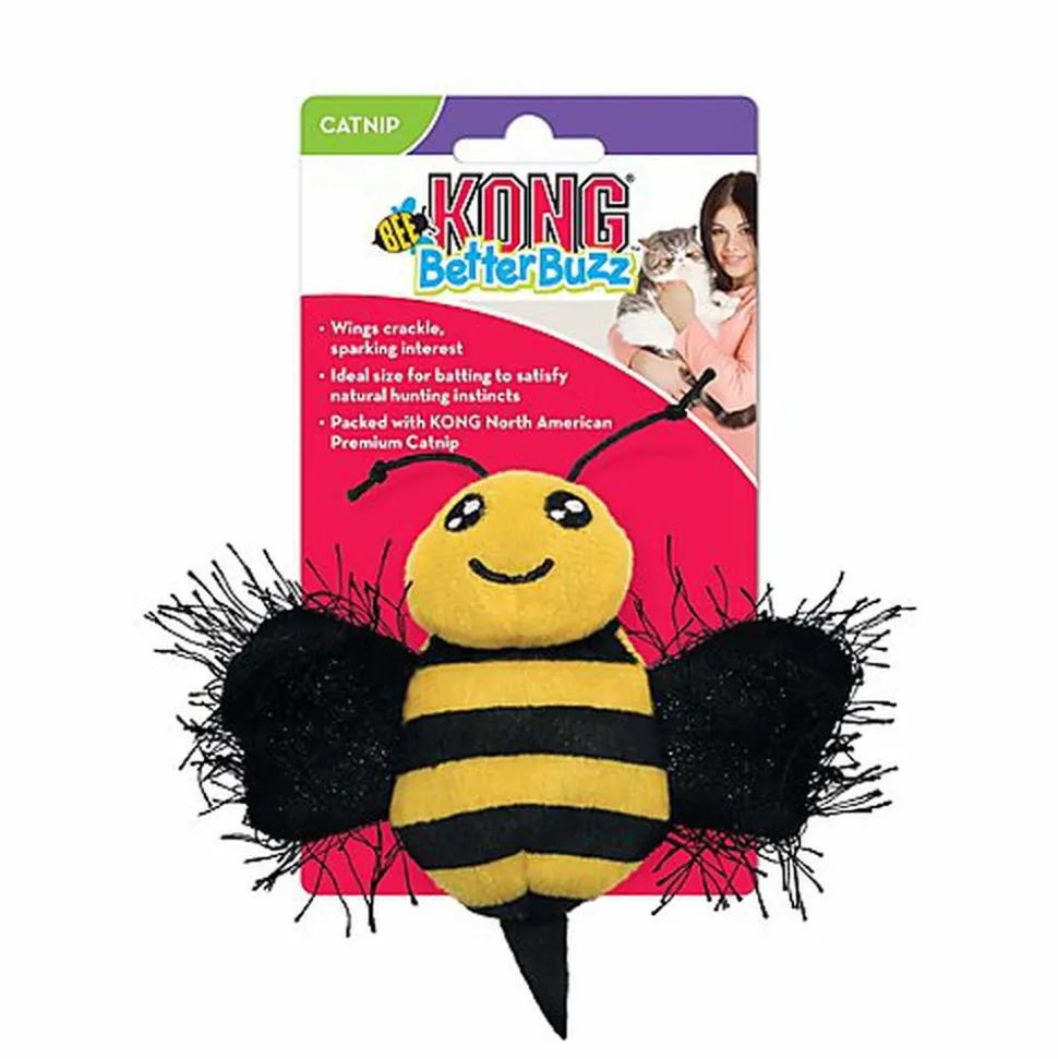 Le KONG Better Buzz Bee est rempli d’une forte herbe à chat KONG de première qualité nord-américaine pour déclencher les instincts naturels du chat pour les coups de patte, les bonds et la poursuite. Les ailes au bruit de craquement, les antennes élastiques et les ailes battantes en peluche captivent les chats pour de plus longues séances de jeu actif bénéfiques pour la santé. Taille idéale pour donner des coups de patte et satisfaire les instincts naturels de chasse.