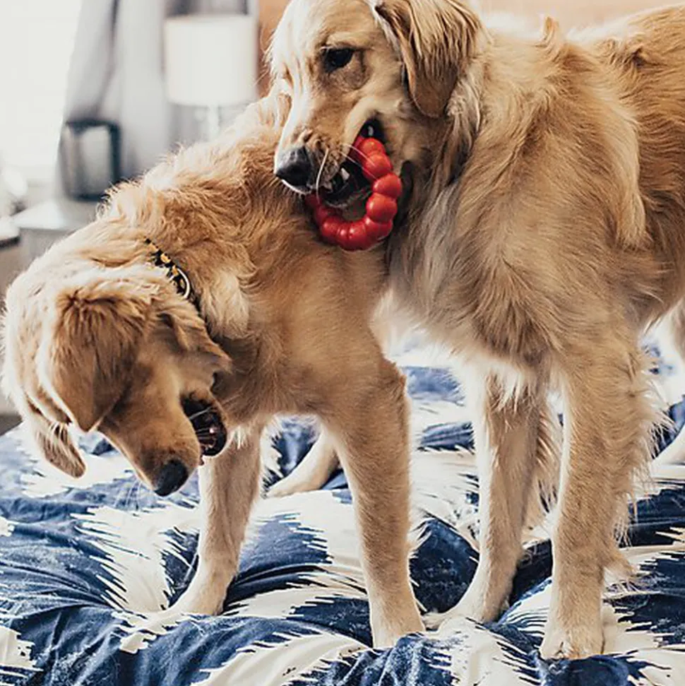 L’anneau KONG est conçu pour de longues séances de mastication naturelle et satisfait les instincts naturels de mastication des chiens. L’anneau en caoutchouc rouge KONG 100 % naturel est ultra-résistant et ses rainures offrent à votre chien une délicieuse opportunité de mastication tout en préservant la bonne santé des dents et des gencives.