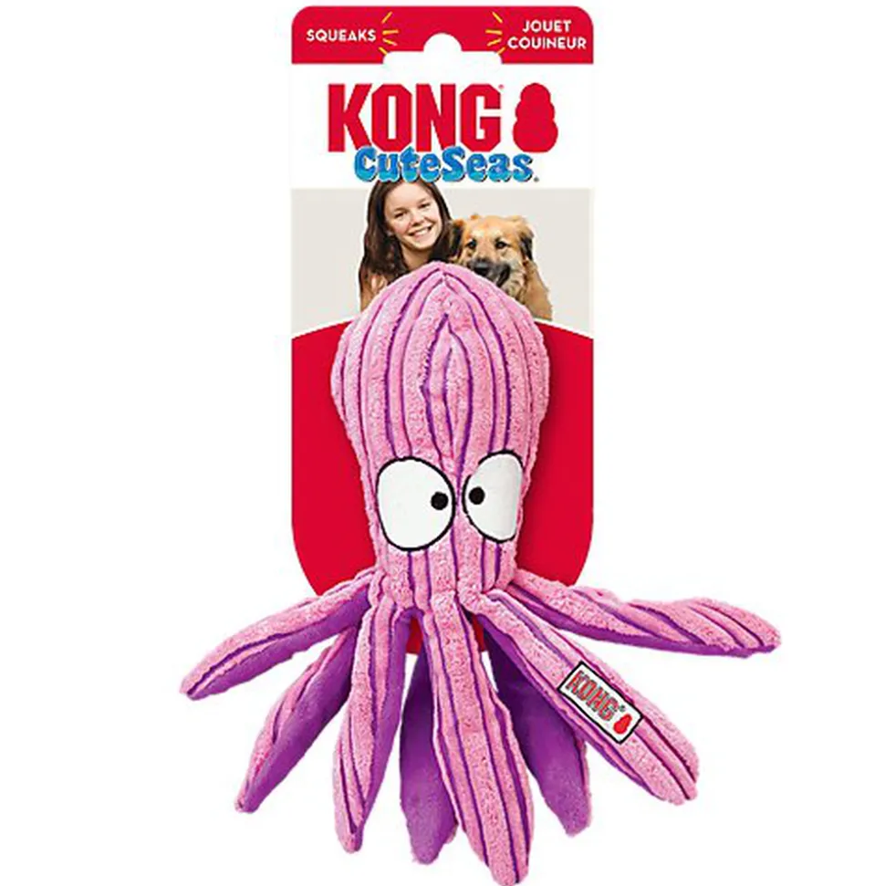 Les KONG CuteSeas sont en velours côtelé, une matière idéale pour les câlins. Ils contiennent également un sifflet et émettent un son crépitant pendant les sessions de jeu.