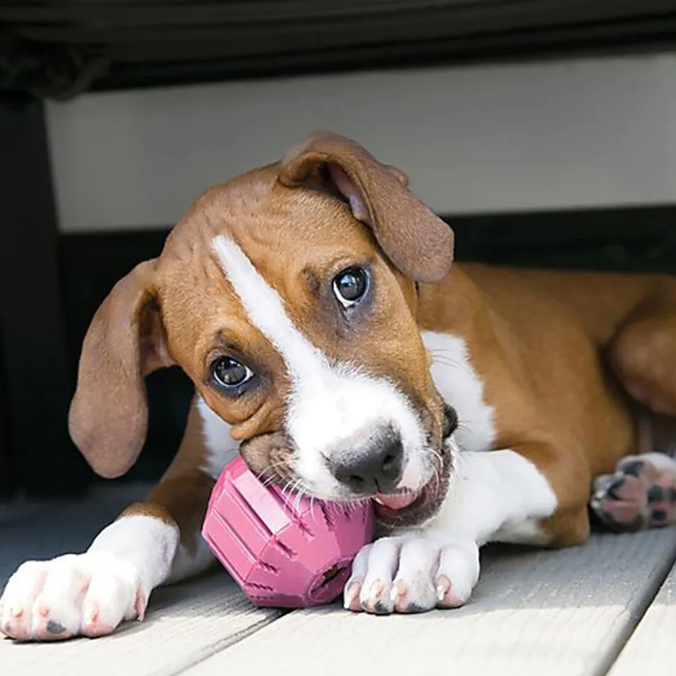 La balle KONG Puppy Activity Ball aide les chiots à adopter un comportement de mastication approprié. Faite de caoutchouc unique KONG pour chiot, cette balle permet de satisfaire les besoins naturels de mastication tout en apaisant les dents et les gencives douloureuses.
