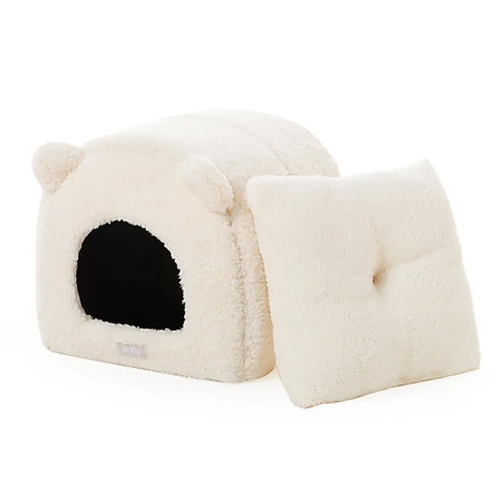 Cachette igloo pour le repos au calme de votre chaton. Grâce à ses bords hauts et fermés votre chaton pourra se reposer dans un environnement tranquille. Cette cachette lui permettra de se camoufler pour dormir dans un petit cocon, mais également de se réchauffer.