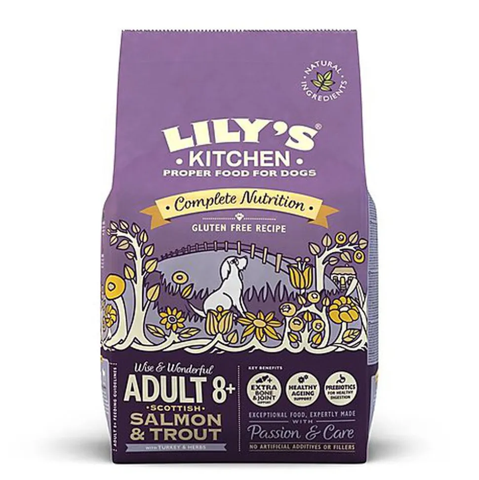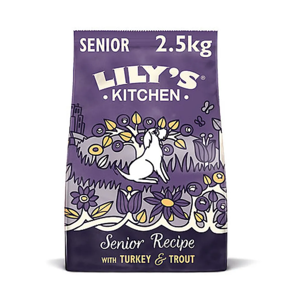 Aliment sec complet « Turkey & Trout Senior Recipe Complete Dry Dog Food » pour chien Lily’s Kitchen : recette Senior à la dinde et à la truite, sans céréales et spécialement conçu pour les chiens de 8 ans et plus
