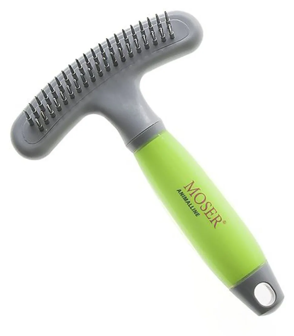 Étrille sous-poil avec picots en métal rotatifs pour le démêlage et l‘élimination efficace du sous-poil. Vous fournissez un effort minimum, pour un résulat maximum : la rangée double de picots en métal permet d‘éliminer un maximum de sous-poil en un rien de temps.
