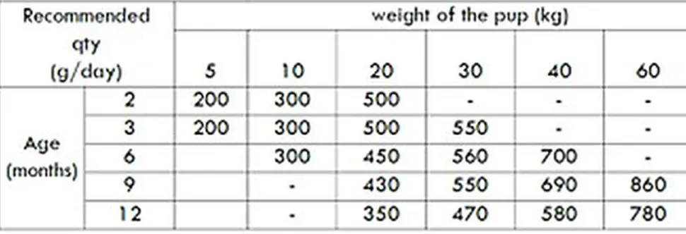 | Directives d’alimentation | Fournissez les quantités recommandées selon le tableau. Veillez à ce que votre animal ait toujours de l’eau fraîche à sa disposition. Conserver dans un endroit frais et sec, à l’abri de la lumière du soleil. |