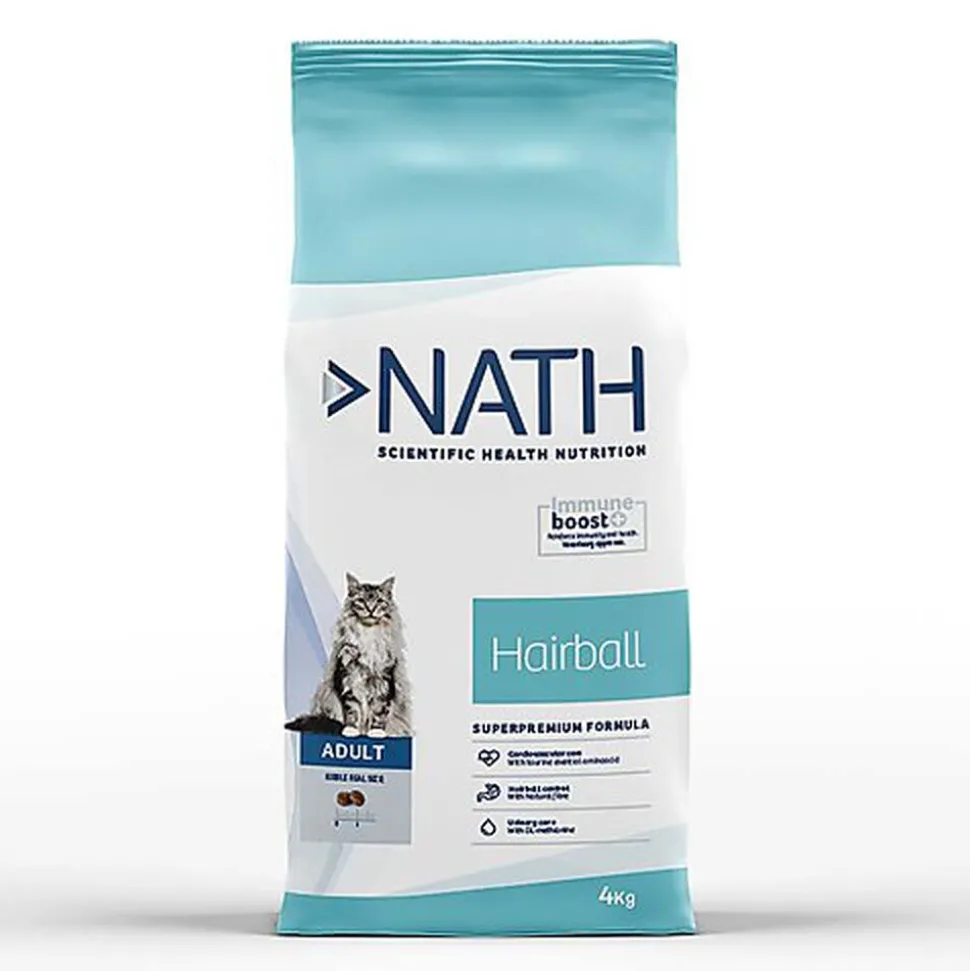 Croquettes sèches avec une formule Super Premium pour chats adultes. Si votre ami félin a la tendance à se toilettage constamment avec sa langue et a tendance à former des boules de poils gênantes, vous avez besoin de lui offrir une alimentation qui l’aide à les éliminer de manière naturelle, et pour cela, vous devez lui servir les croquettes pour chats Hairball de Nath.