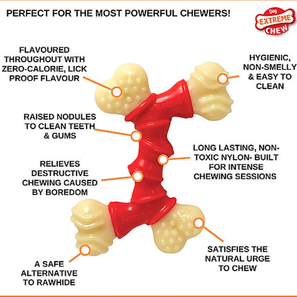 Doublez les bouts d’os, doublez le plaisir !Ce jouet à mâcher de longue durée défie même les mâcheurs les plus agressifs et aide à satisfaire l’envie naturelle du chien de mâcher.