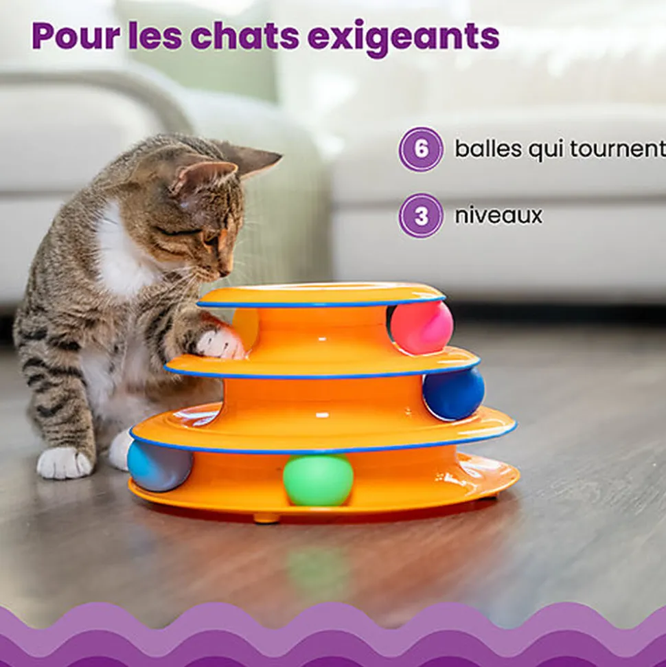 La tour de jeu Tower of Tracks par Catstages dispose de trois niveaux de circuits, elle comporte trois balles avec lesquelles votre chat peut jouer. C’est le jouet idéal pour les sessions de jeu intenses grâce à sa conception robuste et à sa base anti-dérapante.