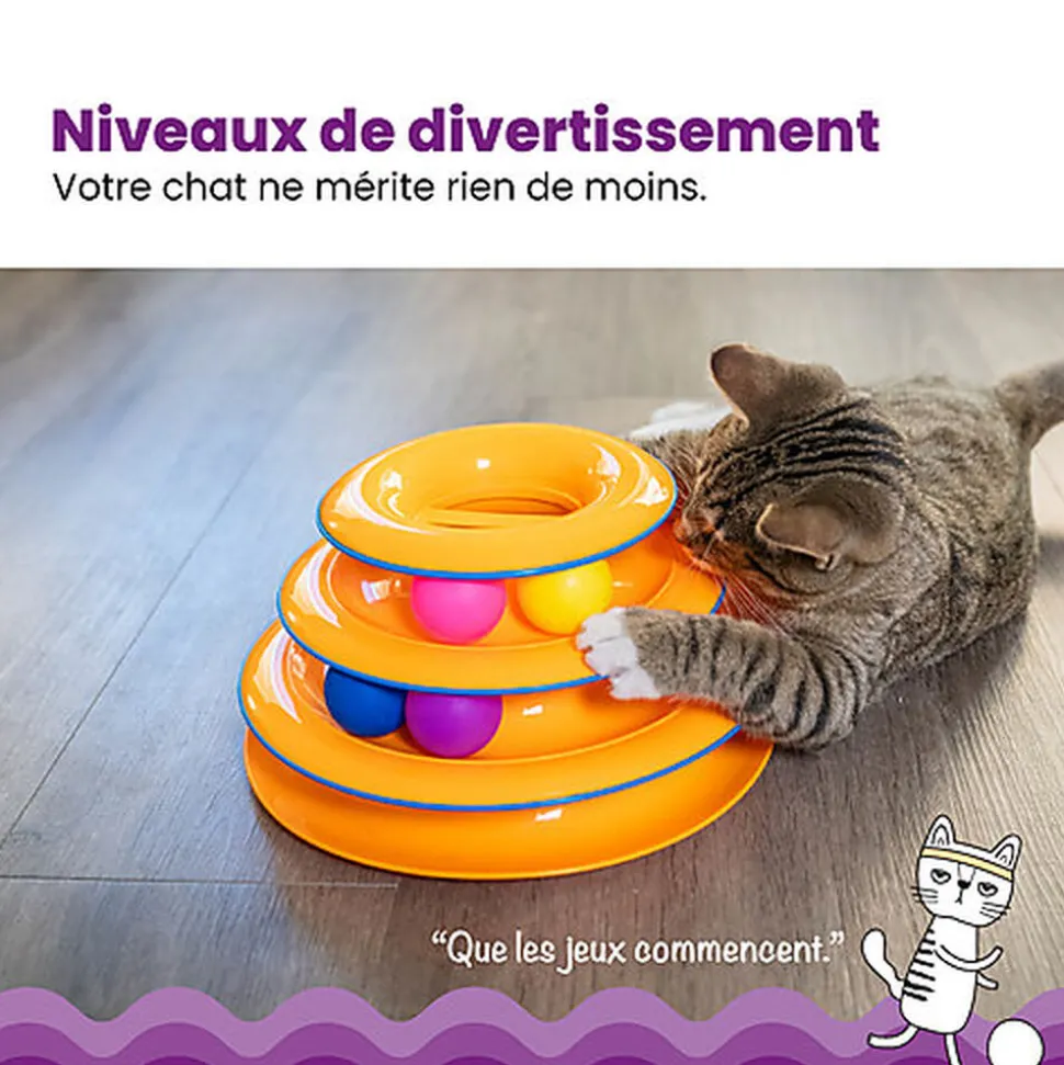 La tour de jeu Tower of Tracks par Petstage va faire courir votre chat autour des circuits, il va donner des coups de pattes, taper et finalement attraper les balles colorées !