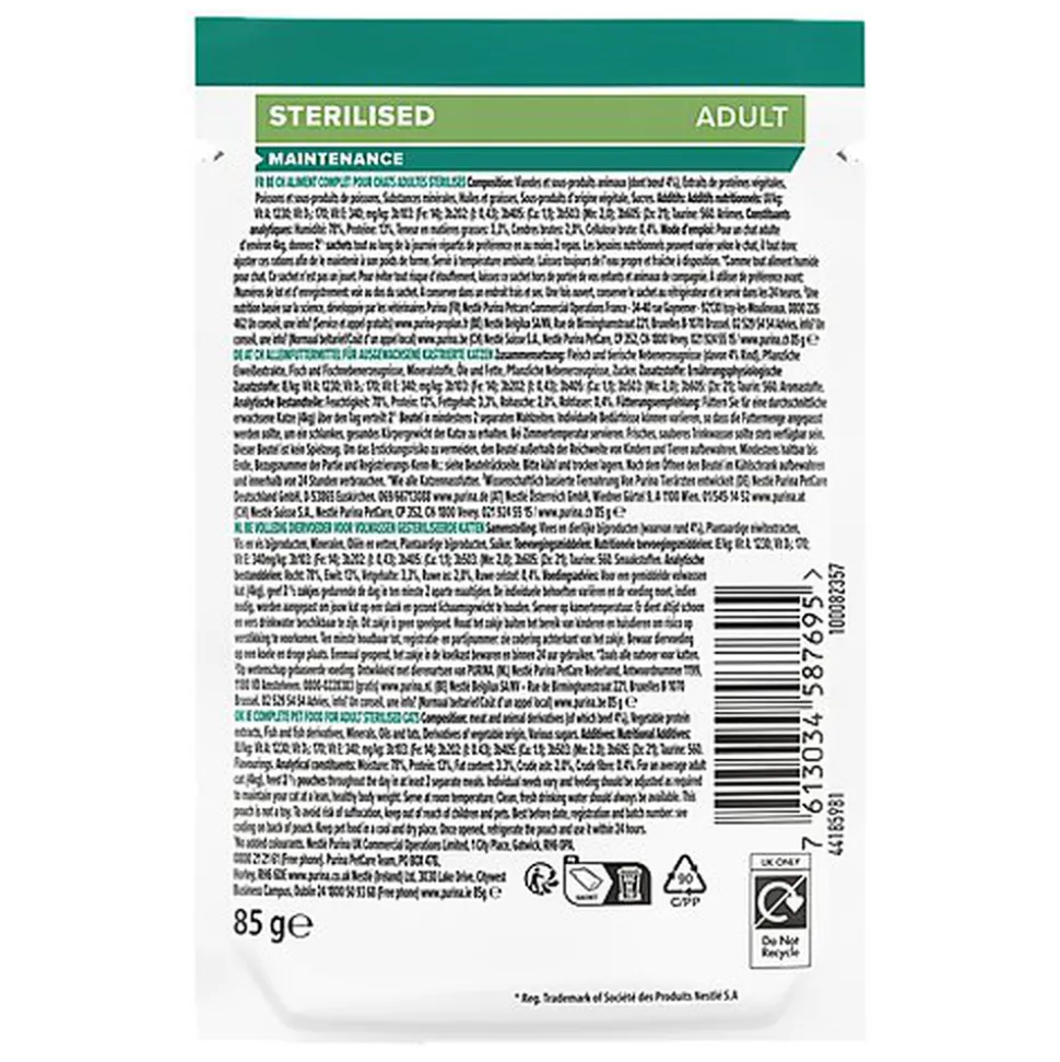 | Plus produit | Santé urinaire : aide à maintenir la bonne santé des voies urinaires chez les chats castrés/stérilisés. Défenses naturelles : aide à maintenir des défenses naturelles, grâce à des antioxydants comme la vitamine E Gestion du poids : aide à maintenir un poids de forme. De tendres moreaux en sauce : les tendres morceaux, associés à une sauce savoureuse, sont hautement appétents, grâce à une technologie exclusive de Nestle PURINA® |