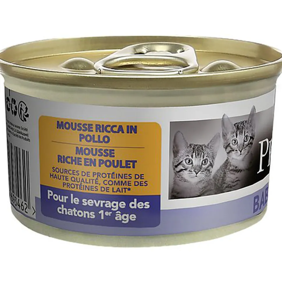 PURINA® PRO PLAN® Baby Kitten Mousse Riche en Poulet est un aliment complet pour chatons, il convient également aux chattes en gestation ou en lactation.