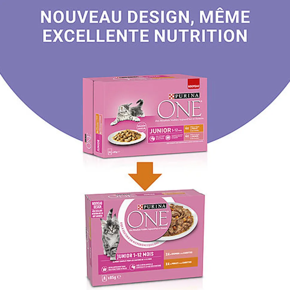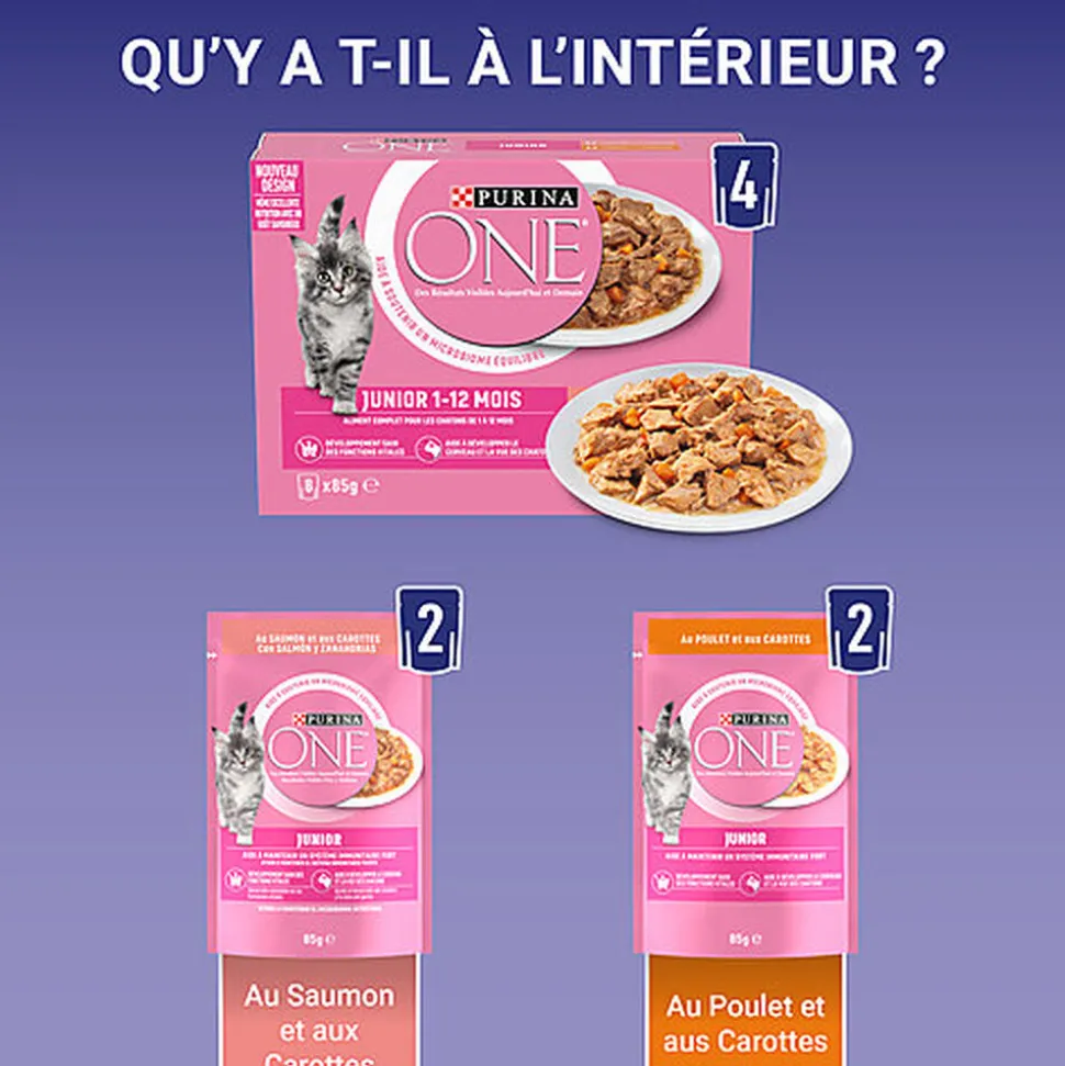 Les sachets fraîcheur PURINA ONE® sont des recettes complètes et équilibrées qui associent de tendres effilés aux légumes à une sauce délicieuse, combinant une nutrition de haute qualité à un goût savoureux. Développées par les nutritionnistes et vétérinaires PURINA®, nos recettes aident à soutenir un microbiome intestinal sain. En effet, ce bon équilibre de micro-organismes est important pour avoir un effet positif sur la bonne santé digestive et le bien-être général de votre chat. Une digestion saine, un système immunitaire sain et un pelage soyeux, constatez des résultats visibles sur la santé de votre chat aujourd’hui et demain.