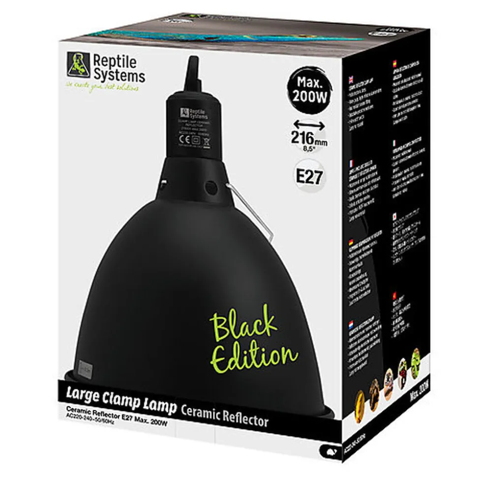 Clamp Lamp Black Edition Large ⌀ 216mm, avec mécanisme de serrage multidirectionnel.