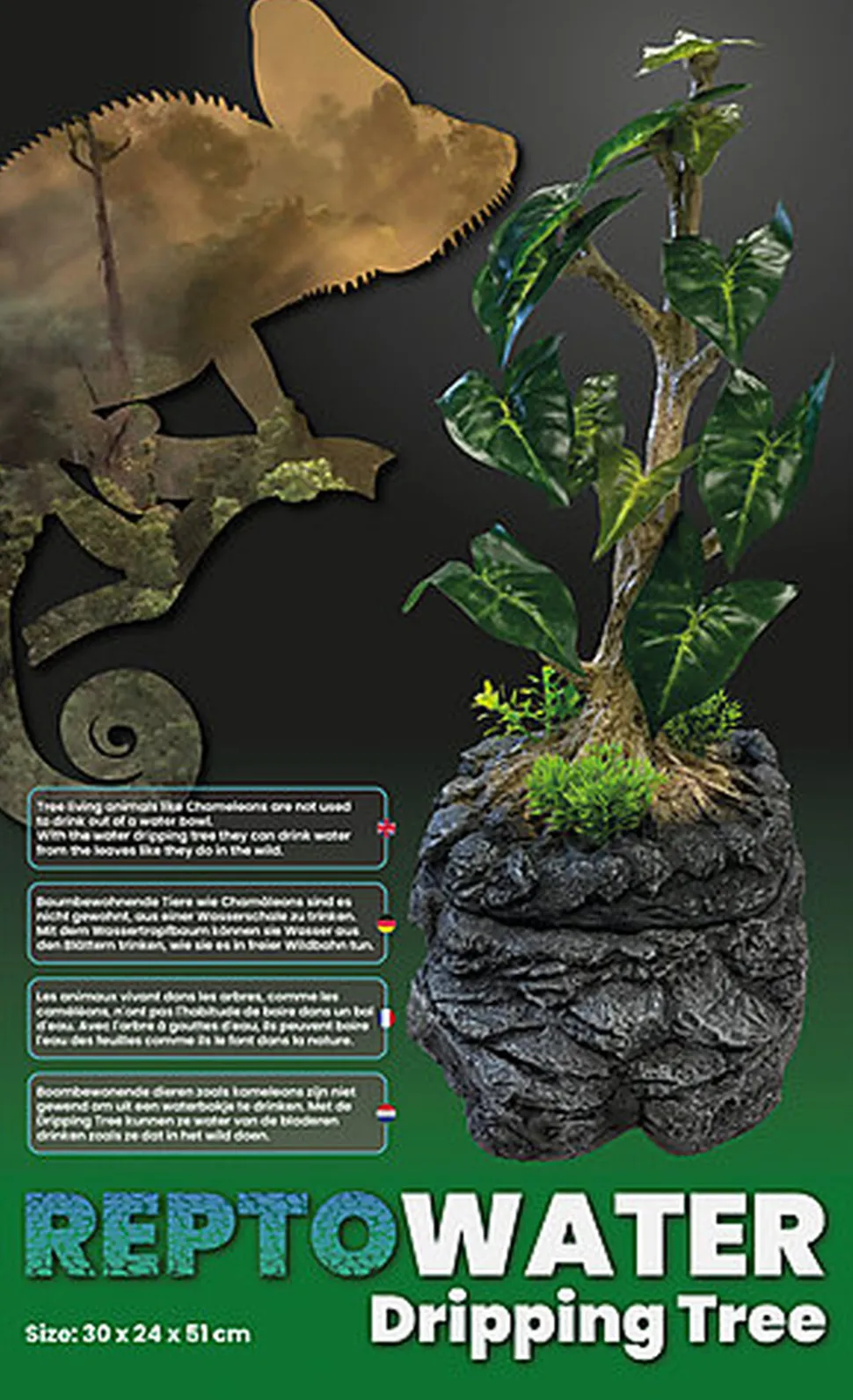 Ces animaux ne peuvent pas ou ne veulent pas boire dans un bol d’eau. Vous pouvez parfaitement simuler cette situation naturelle avec l’arbre à gouttes d’eau Repto.