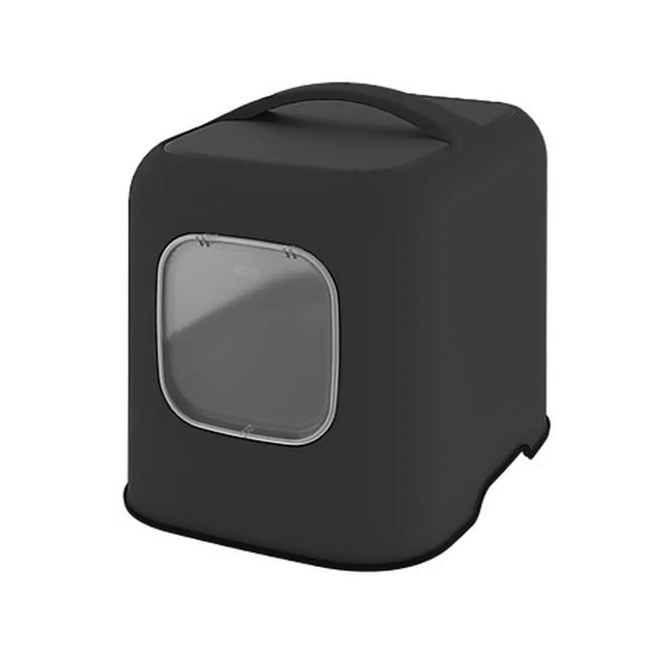 Maison de toilette pour chat avec aimant intégré dans la porte. Cette caractéristique unique évite les odeurs de s’echapper.