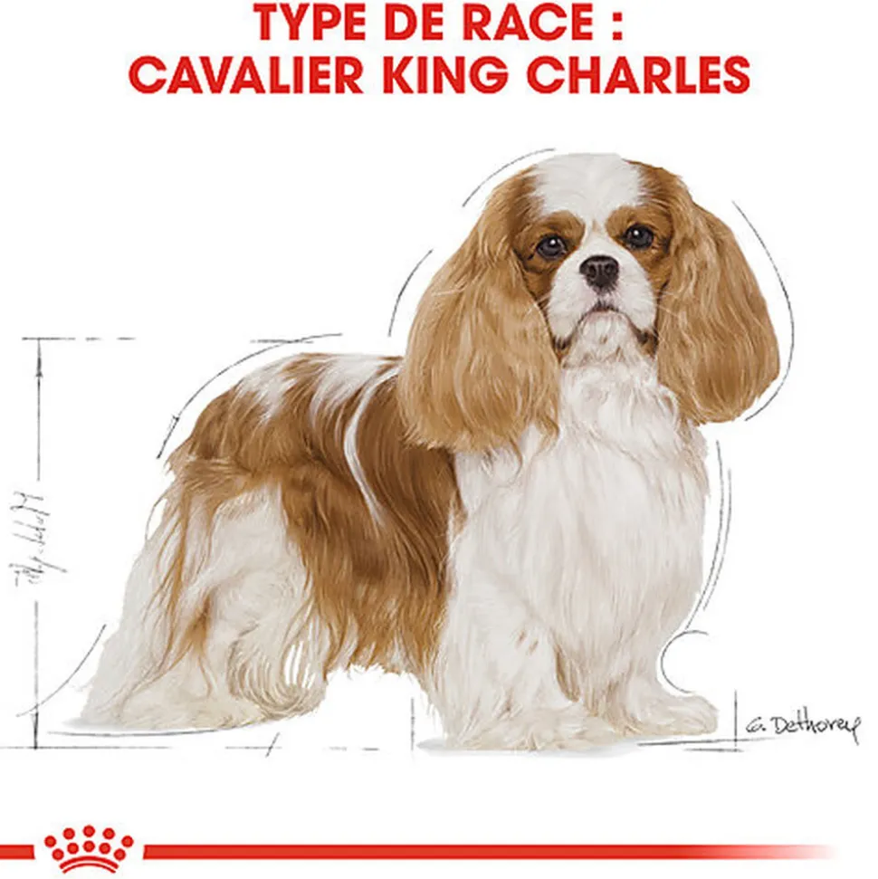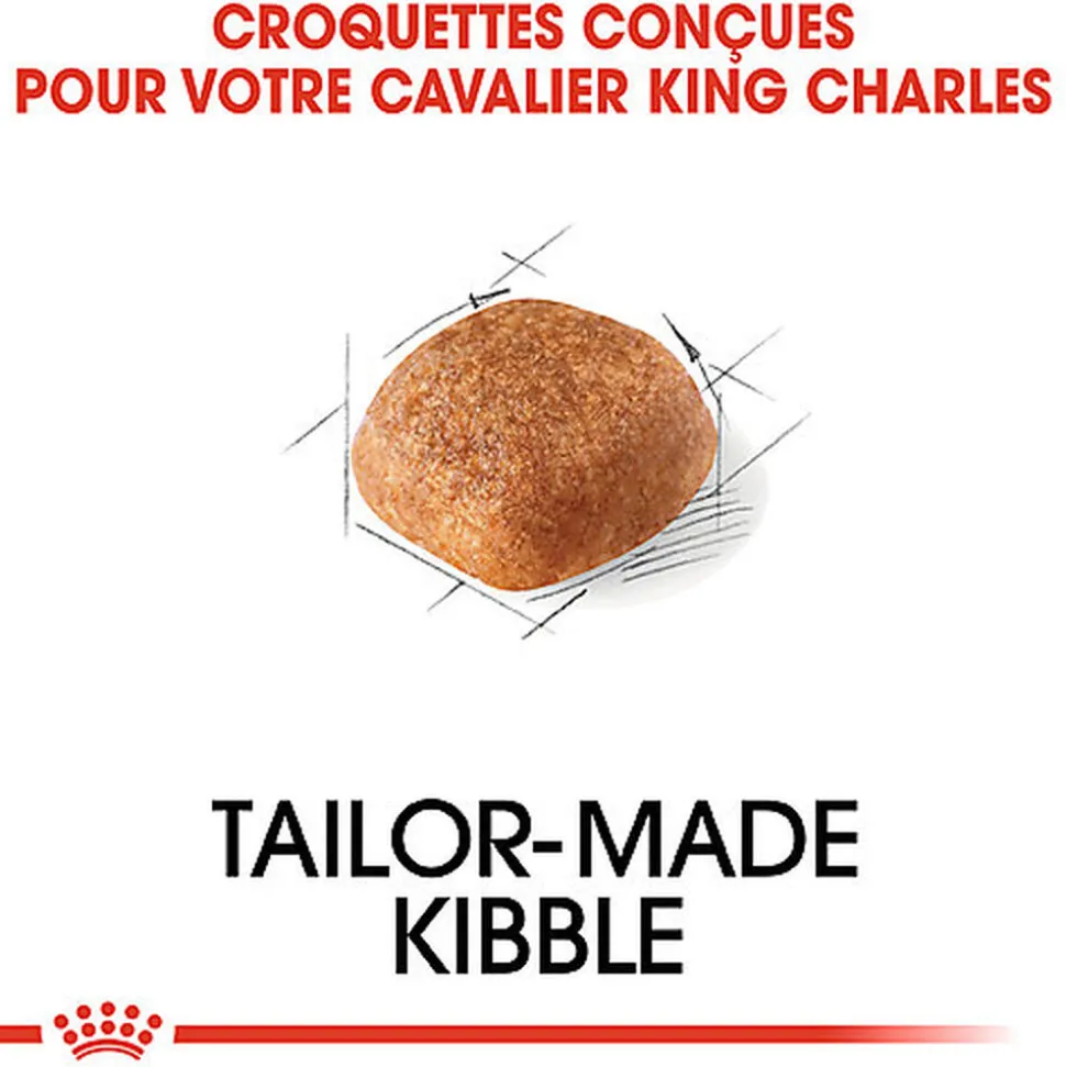 ROYAL CANIN® Cavalier King Charles Adult contient des croquettes exclusivement conçues pour faciliter la prise de nourriture et la mastication des aliments par votre Cavalier King Charles.