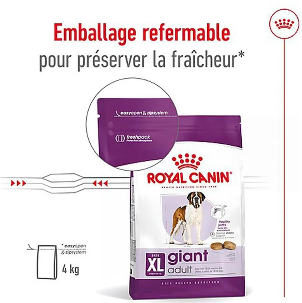 SOUTIEN DU CAPITAL OSTEO-ARTICULAIRE : Contribue à la bonne santé des os et articulations très sollicités chez les chiens de très grande taille.
