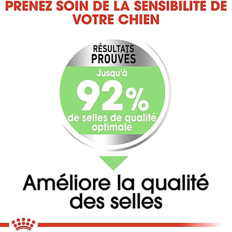Ne vous contentez pas de nous croire sur parole : les résultats de ROYAL CANIN® Digestive Care Mini montrent un développement optimal de la qualité des selles allant jusqu’à 92 %, preuve irréfutable d’un estomac sain. Cela signifie que la formule ROYAL CANIN® Digestive Care Mini a fait ses preuves.