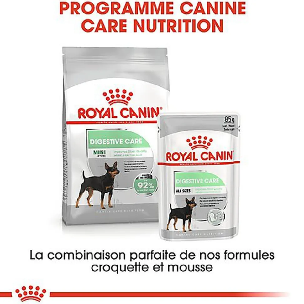 Adaptée aux chiens pesants jusqu’à 10 kg, la formule très savoureuse de ROYAL CANIN® Digestive Care Mini est spécialement conçue pour les chiens sujets aux troubles digestifs.