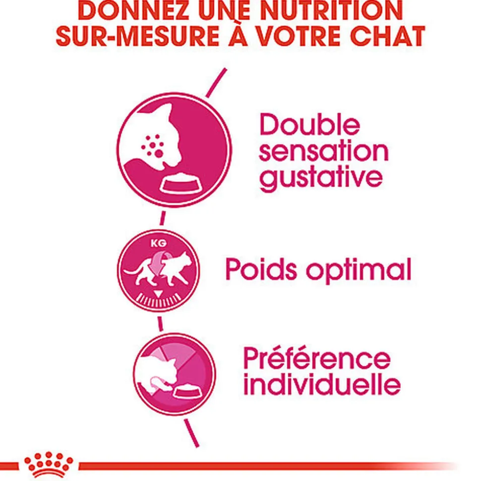 Royal Canin a développé 3 formules différentes pour satisfaire même les chats les plus exigeants ! Ces produits font tous partie de notre gamme Feline Preference, qui comprend également les formules Royal Canin Aroma Exigent et Royal Canin Protein Exigent.