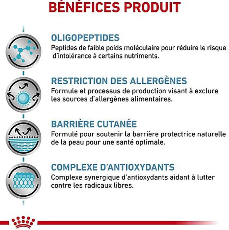Aliment diététique complet pour chiens adultes, ROYAL CANIN® ANALLERGENIC sec est un aliment diététique complet pour chiens destiné à la réduction des intolérances à certains ingrédients et nutriments.