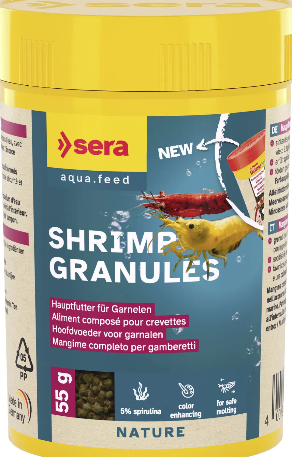 Shrimp Granules est l’aliment composé à base de granulés fabriqués selon un procédé spécial, sans colorants ni conservateurs, pour toutes les crevettes d’eau douce et d’eau de mer.
