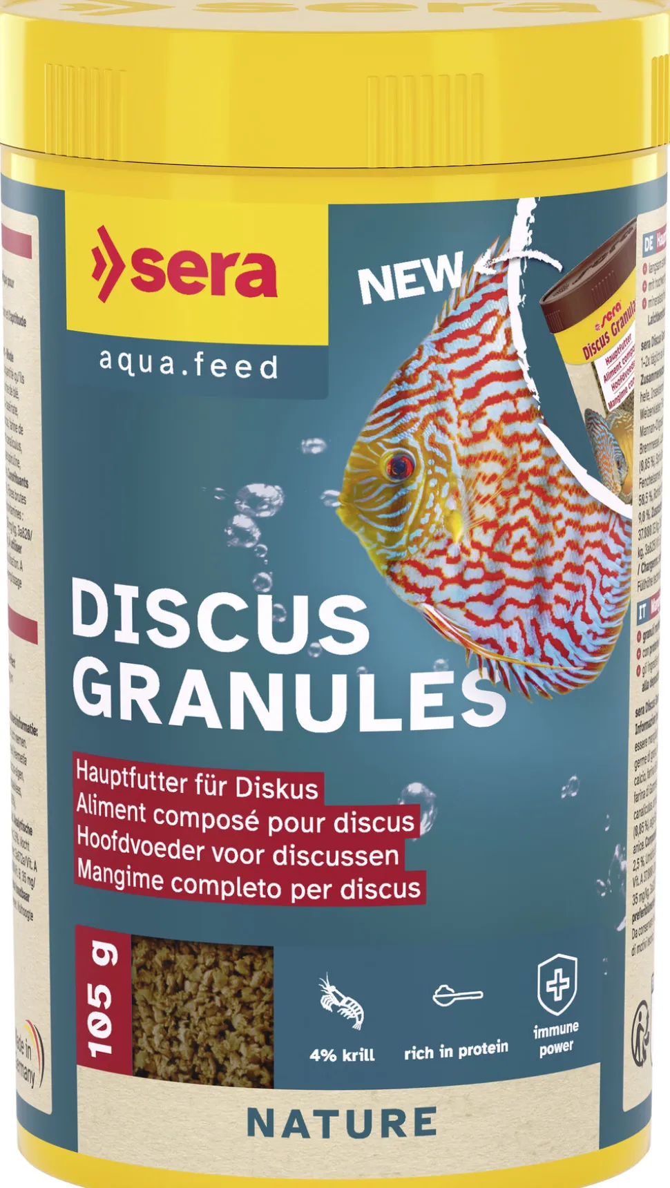 Discus Granules est l’aliment composé, sans colorants ni conservateurs, à base de granulés moelleux fabriqués selon un procédé spécial, pour tous les discus (également pour les jeunes poissons) et d’autres poissons d’ornement exigeants.