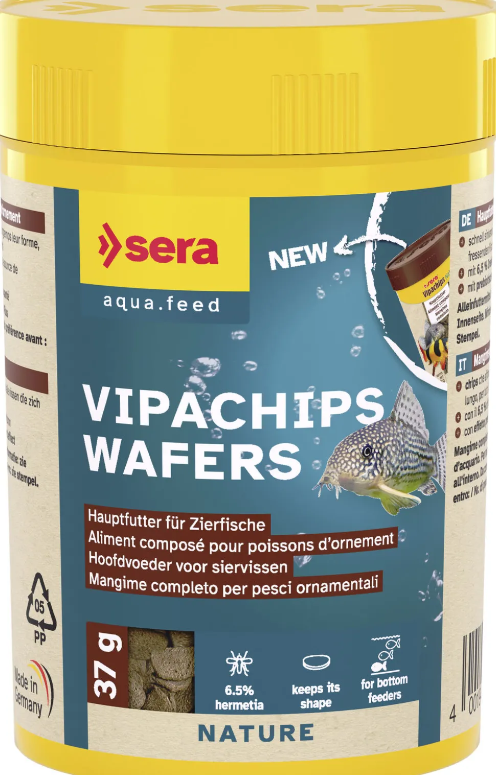 Vipachips Wafers est l’aliment composé, à base de chips coulant rapidement, sans colorants ni conservateurs, pour tous les poissons se nourrissant au fond.