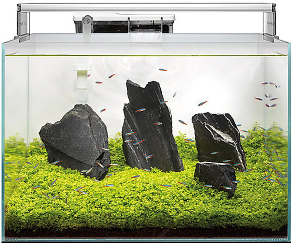 Grâce à ses dimensions parfaitement adaptées et à son équipement complet, cet aquarium est idéal pour accueillir petits poissons, crevettes et une grande variété de plantes aquatiques, pour un résultat esthétique et vivant.