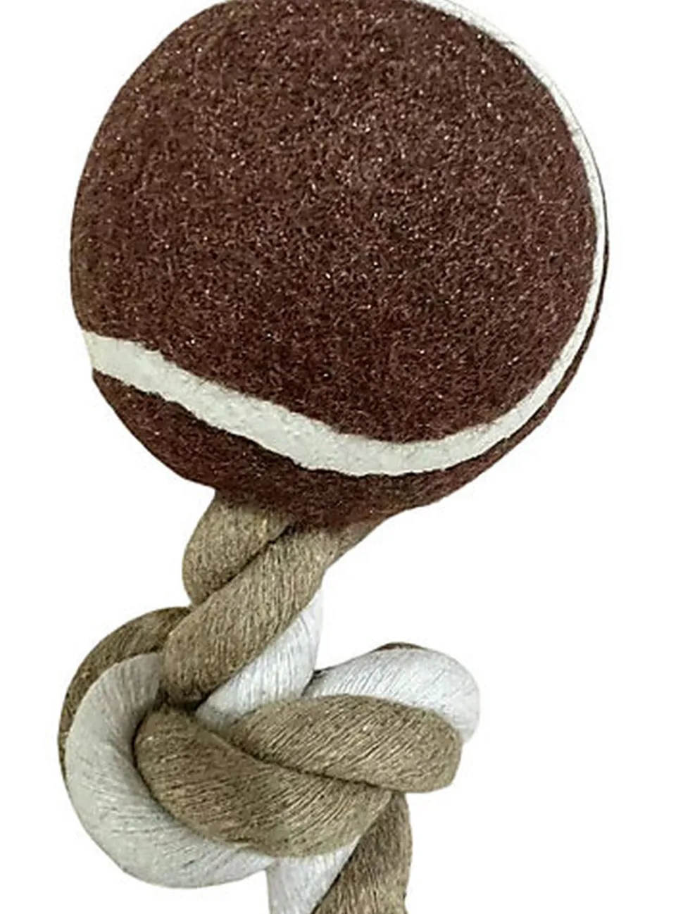 La Corde avec Boucle et Balle Tootoy! ajoute une nouvelle dimension à vos jeux de tir à la corde. La balle de tennis apporte une texture supplémentaire dans laquelle votre chien appréciera planter ses dents. Elle permet également d’ajouter un poids qui rendra le jouet plus facile à lancer. La poignée formée par la boucle en corde facilitera également le lancer.