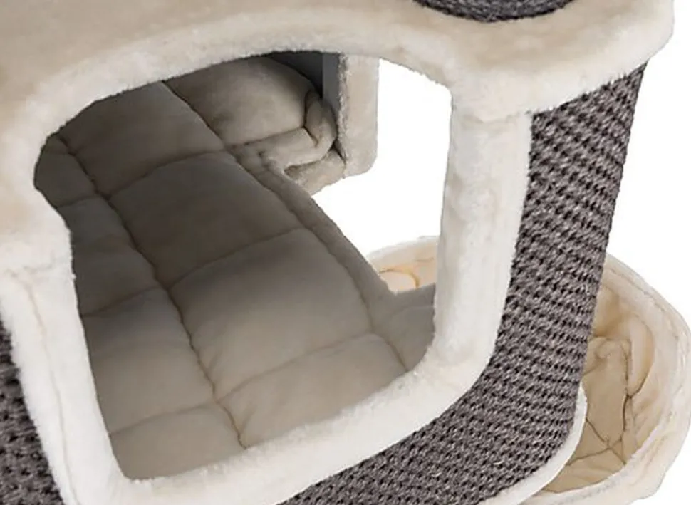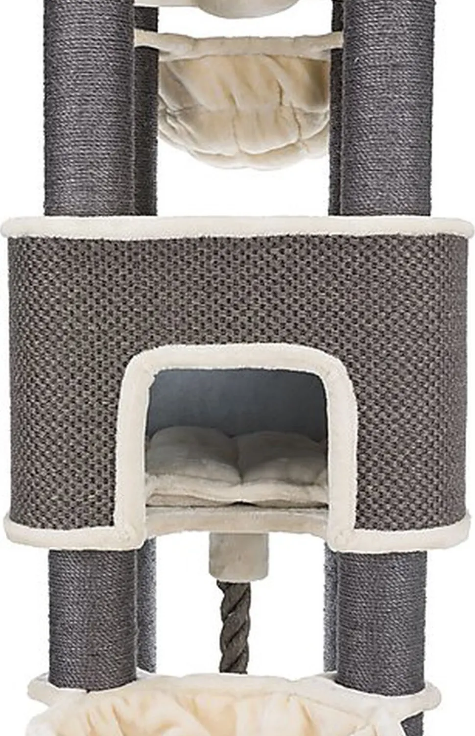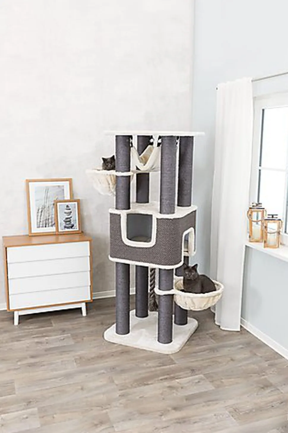 L’arbre à chat XXL Humberto de chez Trixie est un arbre à chat particulièrement adapté aux gros chats. Il possède des poteaux à griffer en sisal naturel et trois différents types de couchages à différentes hauteurs. Il est aussi recouvert de peluche de très haute qualité (polyester) et sisal naturel. Un arbre à chat complet livré en 2 colis.