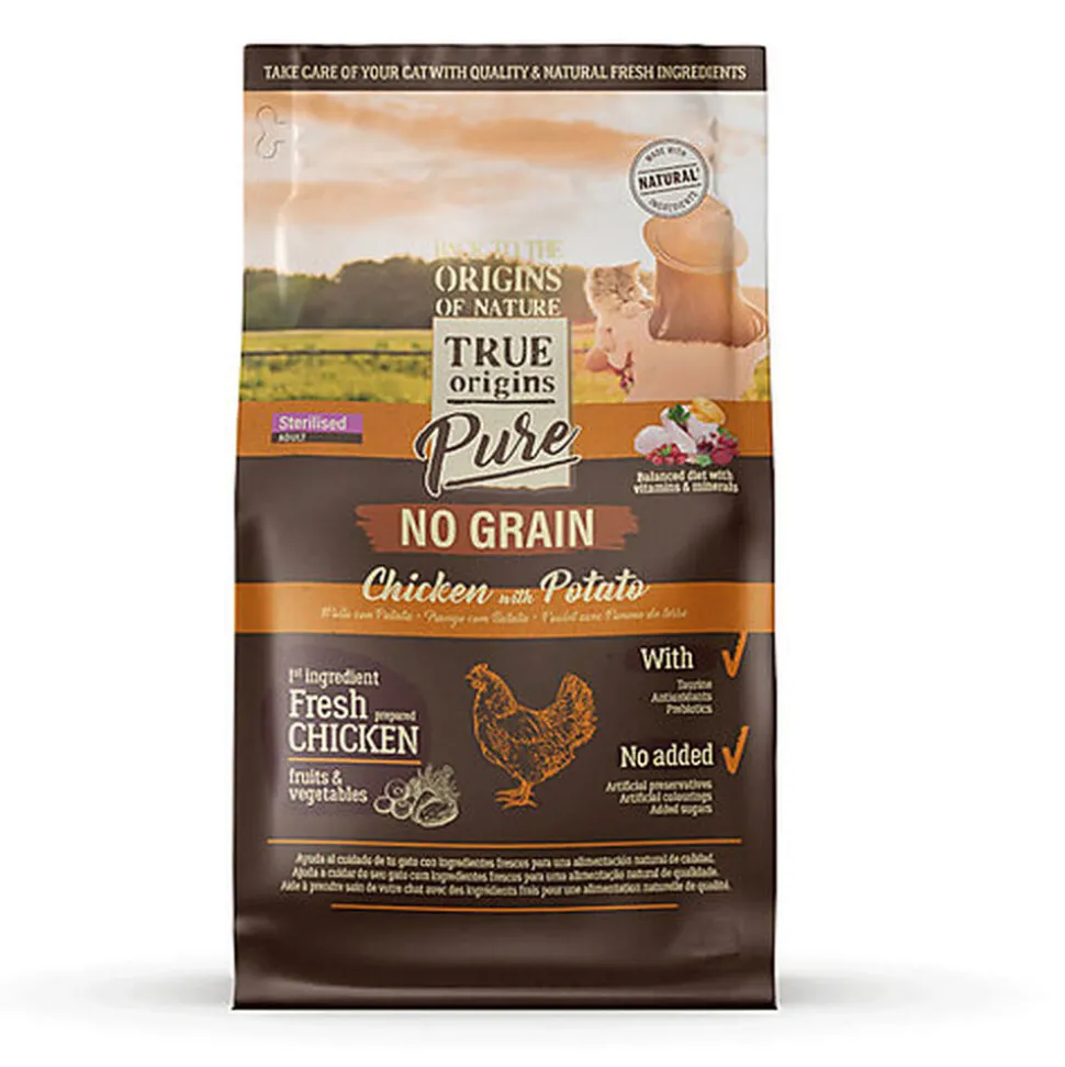 Les croquettes au poulet sans céréales True Origins Pure pour chat adulte stérilisé sont formulées pour couvrir tous les besoins nutritionnels de votre chat, aider à le maintenir en pleine forme, à réguler son appétit afin contrôler son poids après la stérilisation.