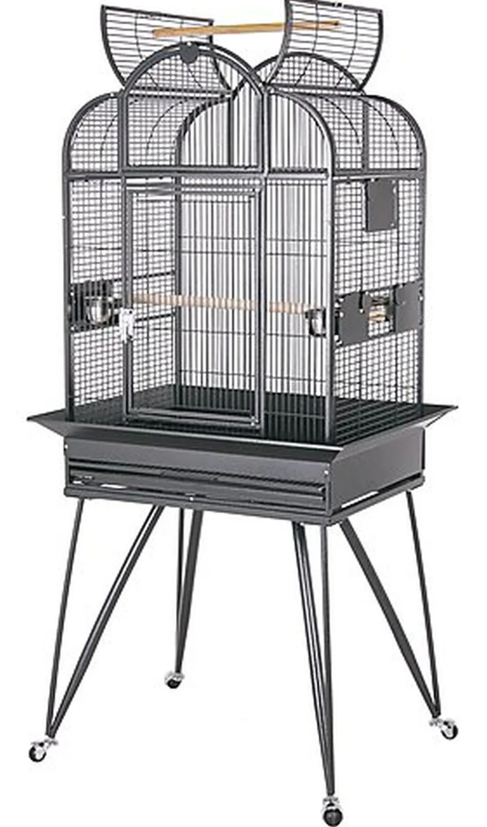 Cage oiseau haute qualité avec support métal sur roulettes pivotantes à 360°.Fabriquée à partir de matériaux particulièrement robustes et garantissant une grande longévité!