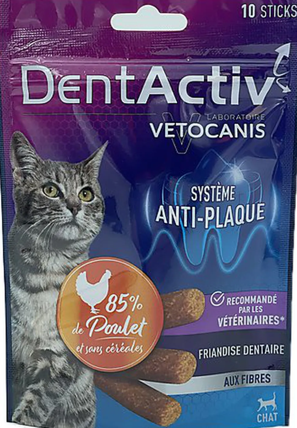 VETOCANIS DENTACTIV Sticks Dentaire pour chat, recommandé par les vétérinaires, nettoie les dents de votre chat avec une meilleure hygiène dentaire à votre chat.