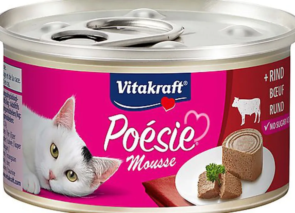 Alimentation complète humide pour chat, Poésie Mousse est idéale pour les chats gourmets. Cette Mousse fouettée, légère et aérienne en boîte pratique de 85 g au goût irrésistible et d’une qualité optimale, fond sur la langue.