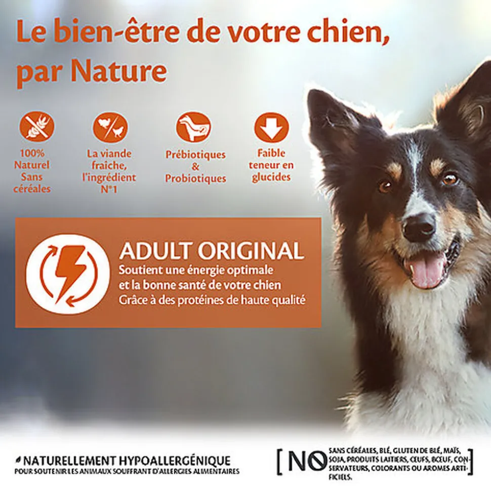 Les croquettes Wellness CORE Original Dinde et Poulet sont complètes et équilibrées pour les chiens adultes de toutes races. Leur composition se rapproche du régime alimentaire naturel des chiens : elles sont sans céréales, riches en protéines, pauvres en glucides et elles contiennent de la viande fraîche. Elles sont sans colorants, arômes et conservateurs artificiels.