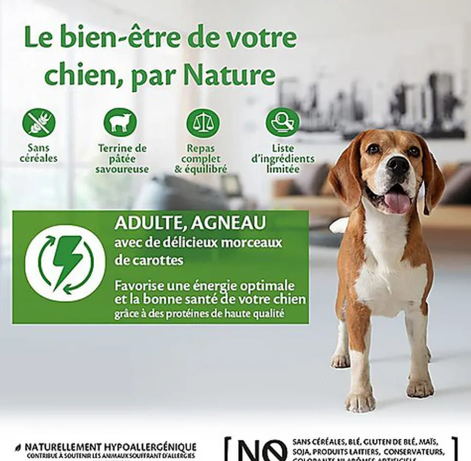 | Composition | Agneau 95% (66% (cœur, foie, poumons, viande), 29% bouillon d’agneau), potiron 4%, minéraux 1% |