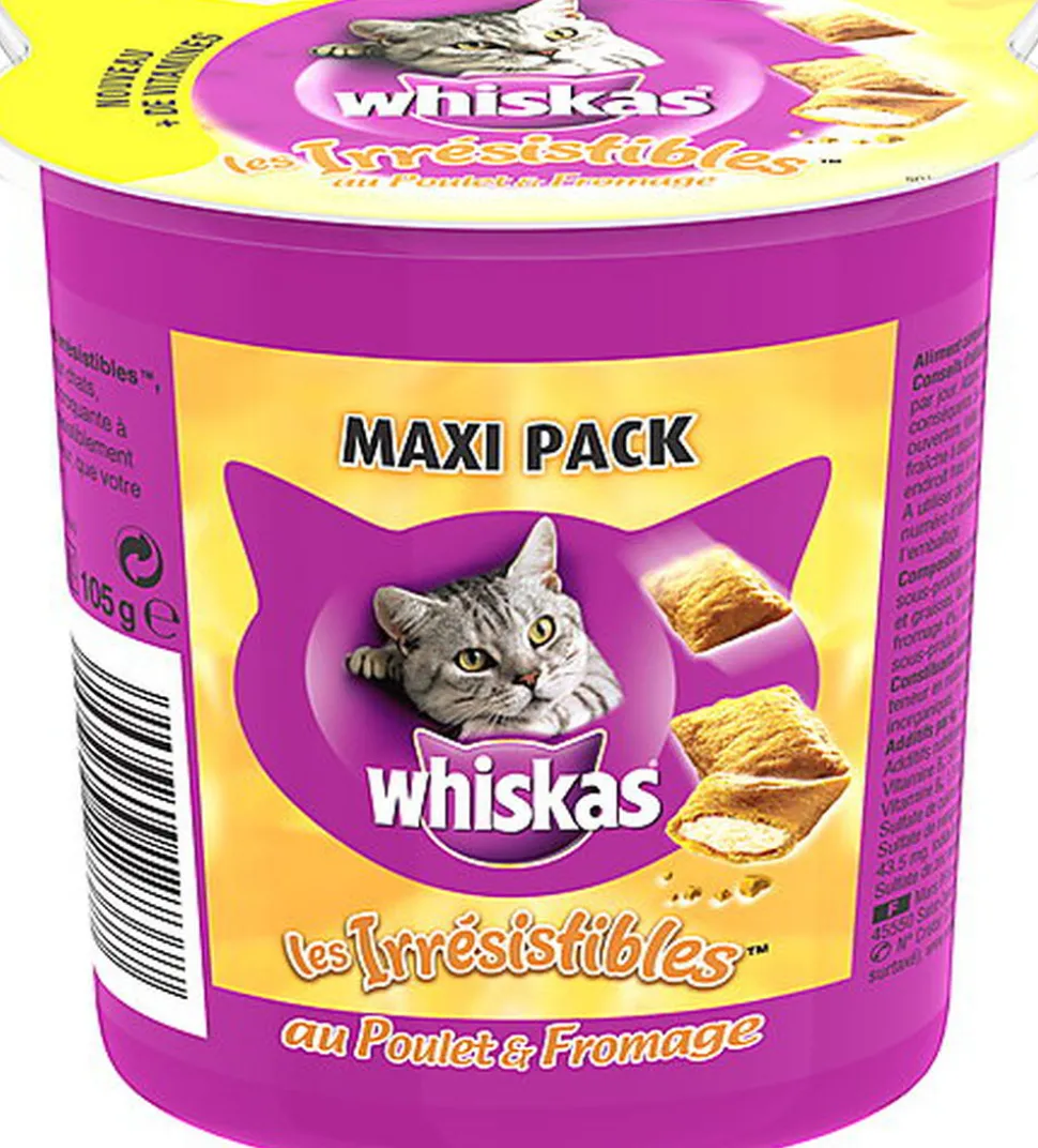 | Conseils d’utilisation | Céréales, viandes et sous-produits animaux (dont poulet 4%), huiles et graisses, lait et produits de laiterie (dont fromage 4%), substances minérales, sous-produits d’origine végétale. |